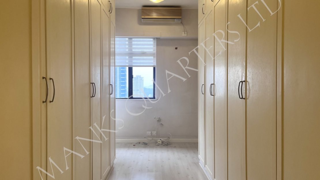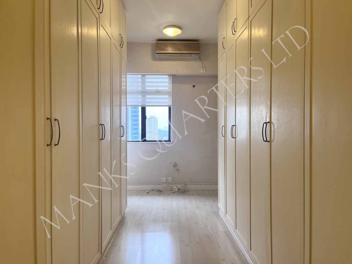- Walk-in closet with floor-to-ceiling fitted wardrobes on both sides walls