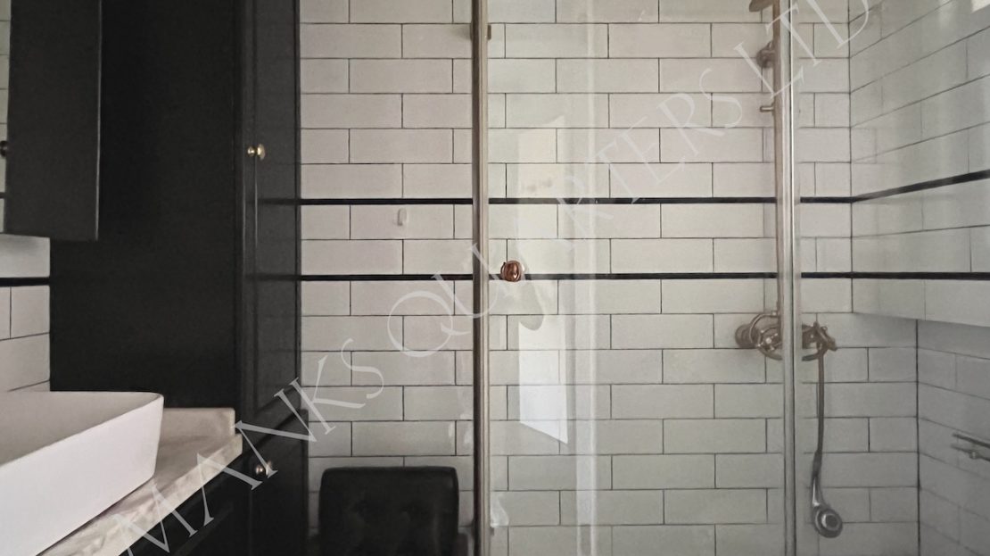 - Herringbone flooring throughout the apartment