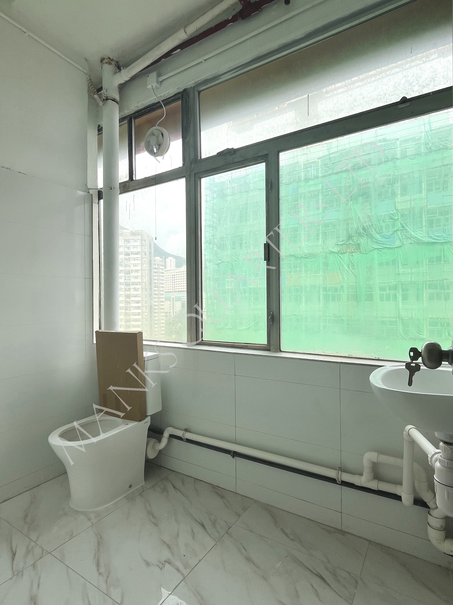 GFA 3307sqft open plan space Full wall of windows letting bright light in Concrete industrial style bathroom Built- ...